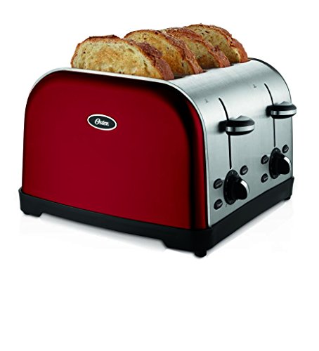 The Oster 4-Slice Stainless Steel Toaster's brushed finish makes a bold statement in any contemporary kitchen to toast treats for breakfast, snack time or anytime. Enjoy a variety of bread types, including bagel halves, hamburger buns, English muffins, hearty slices of artisan-style bread, frozen waffles and more. Advanced toasting technology ensures consistent results, while extra-wide slots and dual bread guides toast the thickest of the slices perfectly even and browned just the way you like. Designed with convenient push-button controls.Feature