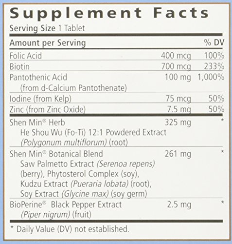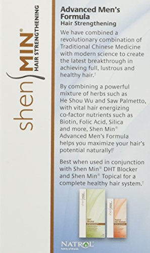 Dietary Supplement. 3 Day supply. More concentrated formula. Advanced formula hair nutrient (These statements have not been evaluated by the Food and Drug Administration. This product is not intended to diagnose, treat, cure or prevent any disease). Clinically tested (Provides the clinically tested herb, He Shou Wu). 1% natural herbal blend. We have combined a revolutionary combination of Traditional Chinese Medicine with modern science to create the latest breakthrough in achieving full, lustrous, healthy hair. By combining a powerful mixture of herbs such as He Shou Wu and Saw Palmetto, with vital hair energizing co-factor nutrients such as Biotin, Folic Acid, Silica and more, Shen Min Advanced Men's formula helps you maximize your hair's potential naturally! For added effectiveness, we have included protective herbal compounds plus BioPerine shown to enhance the bioavailability of other active plant compounds to deliver maximum results. Promotes healthy hair, naturally!Feature