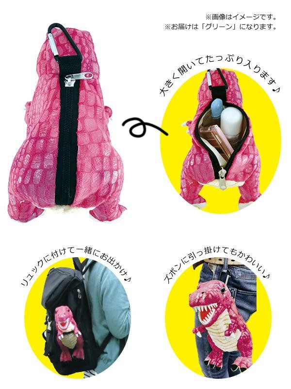 恐竜のぬいぐるみポーチです。リュックやズボンに引っ掛けられます。