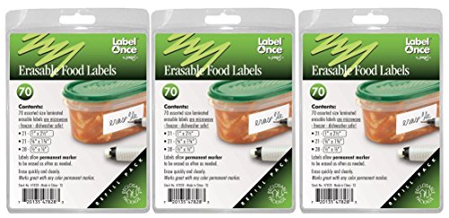 - Each pack includes 70 laminated labels in 3 sizes; 210 labels in all; labels adhere to smooth plastics, glass and stainless steel