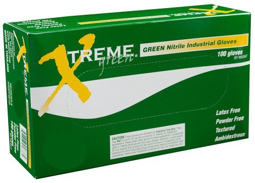 AMMEX - XNGPF42100-BX - Nitrile Gloves - Xtreme - Disposable, Powder Free, Industrial, 4 mil, Small, Green (Box of 100)