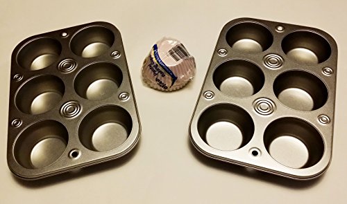 2 Sets of 6 Cup Muffin Pans plus 90 cup cake cups