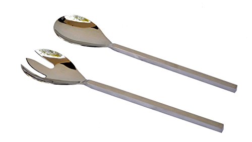 Studio : Krafts Cart Publisher : Krafts Cart Product Description The salad server set consists of a salad spoon a salad fork. It is made from stainless steel in polish nickel finish. This set can be used along with large bowls of glass or steel. The design of servers help in efficiently mixing serving. 0