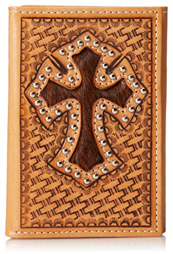 Studio : Ariat Men's Accessories Publisher : Ariat Men's Accessories Binding : Apparel Product Description This Nocona tri-fold wallet by medium and f western products features a basket stamp and calf hair cross inlay. Inside features a clear id holder, 6 credit card slots, removable photo insert, and a place for your cash. 0