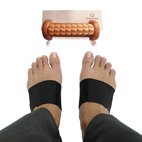TheraFlow Plantar Fasciitis Foot Arch Support Compression Sleeves & Foot Massager Roller - Insert Under Socks & Shoes - Pain Relief for High Arches & Flat...