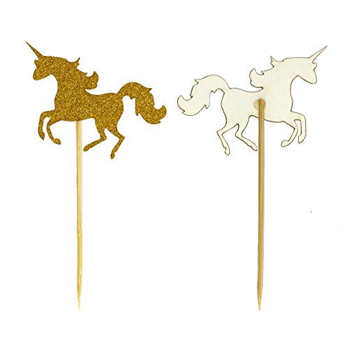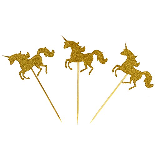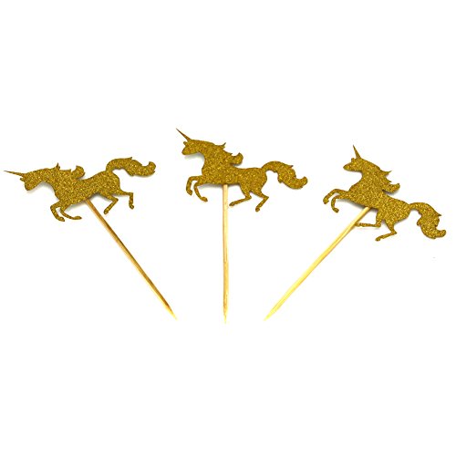 Miraclekoo Golden Glitter Unicorn Cupcake Toppers for Bridal Shower, Wedding Table Cake Decorations, Party Supply Favor Accents, 30 Pack