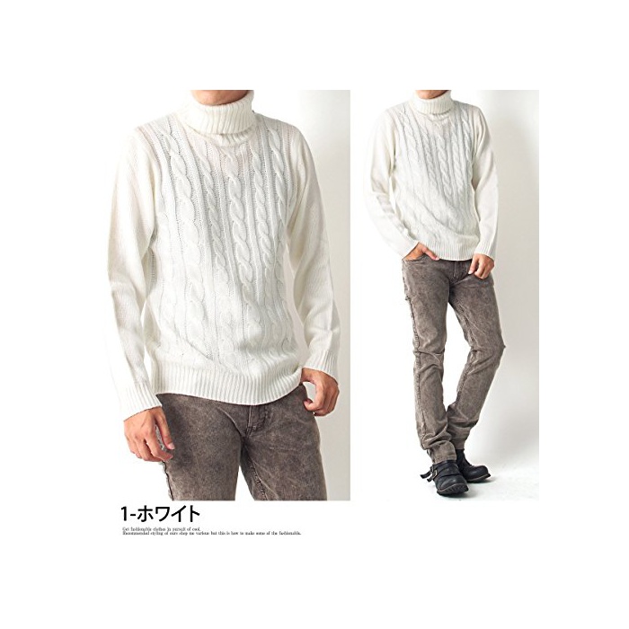 원본상품명: (トップイズム) TopIsm ニット メンズ タトルネック ケブル編み 長袖 無地 セタ M 1-ホワイト