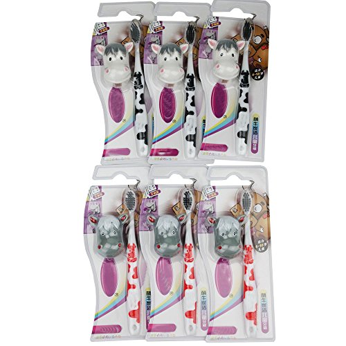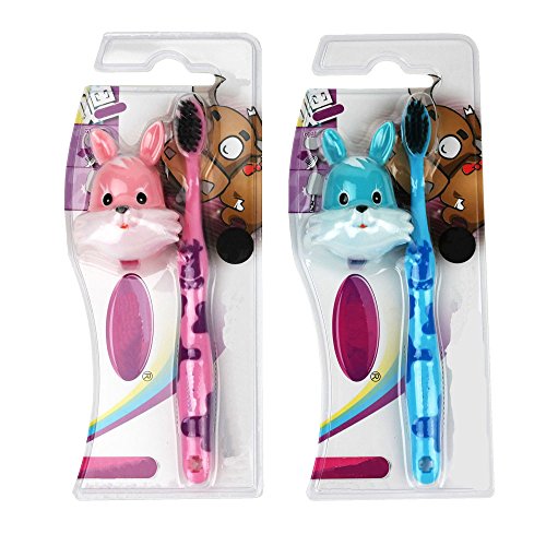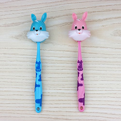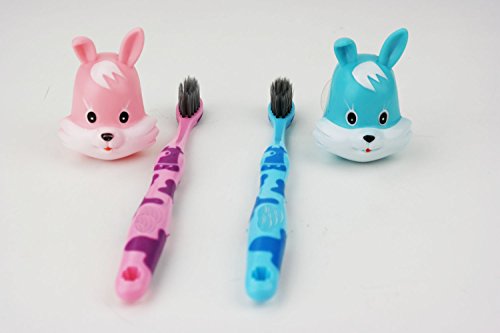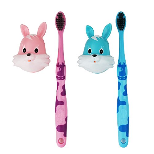 HOMMP Kid's Toothbrush with Cute Cartoon Holder, 6 Counts (rabbit holder)