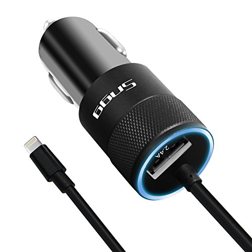 - [Perfect Design]-Built-in 4.5-feet Coiled Lightning Cable and one extra USB port allows iPhone car charger to charge any two devices more easy