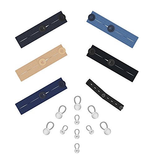 - ♦ BEST VALUE IN MARKET 30-PACK EXTENDER SET: 10x Spring Button Extenders, 5x Elastic Waist Extenders, 5x Collar Extender, 10x Cotton and Denim Button Extenders.