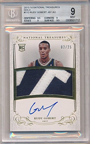 RUDY GOBERT 2013/14 NATIONAL TREASURES RC GOLD AUTO 2 COLOR PATCH #/25 BGS 9 10
