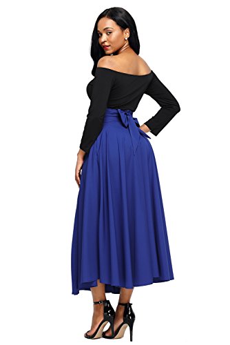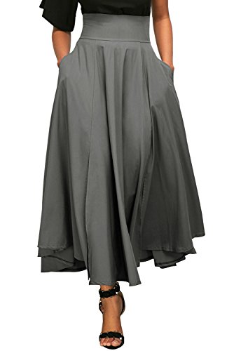 FIYOTE Women High Waist Front Slit Belted Casual A-Line Pleated Midi Skirt Dresses S-XXL