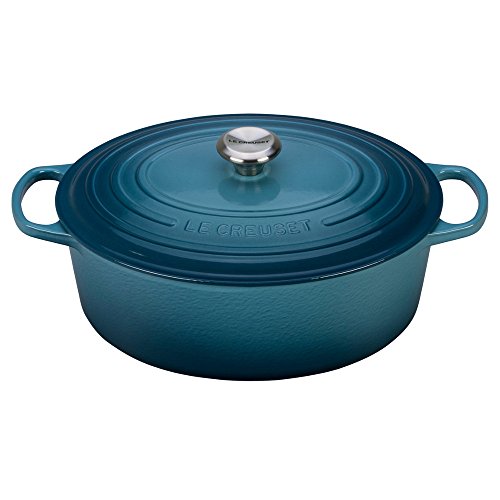 The perfect shape for most larger roasts and poultry, the oval Dutch oven is an ideal piece to have at holiday time. But it's useful at any time of year for preparing classics like coq au vin or arrow con polo. This updated kitchen classic enhances the cooking process by evenly distributing heat and locking in the optimal amount of moisture. With ergonomic handles and an advanced interior enamel that resists chipping and cleans easily, Le Creuset's Dutch ovens blend the best of the past with the latest innovations in comfort and functionality.Feature