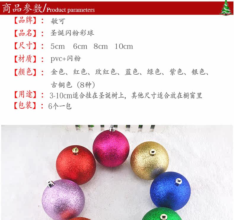 敏可 圣诞节树装饰球  6cm闪粉球金色 橱窗布置圣诞球 特价