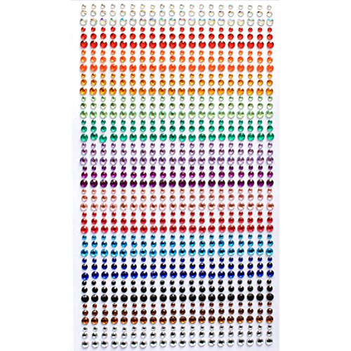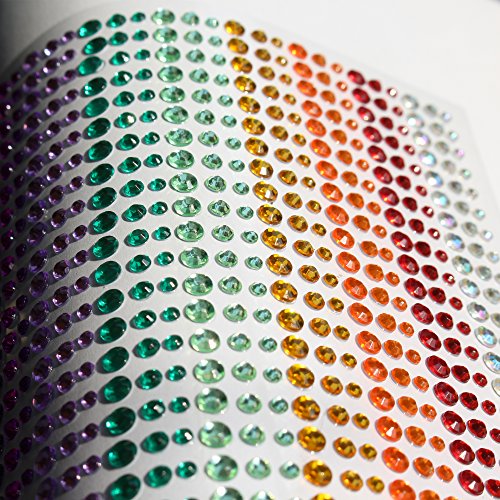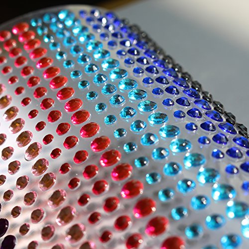 15 Colors 3 Sizes Rhinestone Stickers All in One Sheet 900 Pieces 3mm 4mm 5mm DIY Self Adhesive Colorful Gem Rhinestone Embellishment Stickers Sheet Fits for crafts, body, nails, etc.