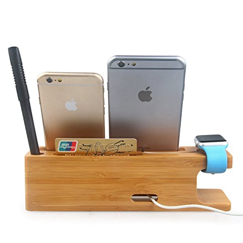 TuoP@ Bamboo Wood Charging Stand, 3 in 1 iPhone 7 /7 plus 6/6 plus 6s/6s plus 5/5s Apple Watch 2/1 Stand Cradle (2016 Released)