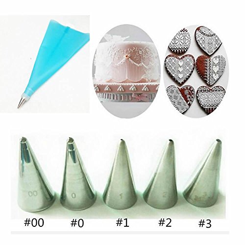 GOOTRADES 7 Pcs-Set Cake Decorating Tips (5 Writing Tube,1 Coupler,1 Silicone Pastry Bag)