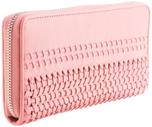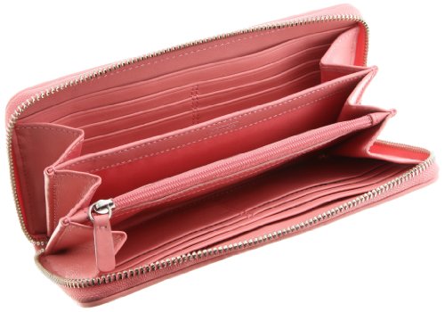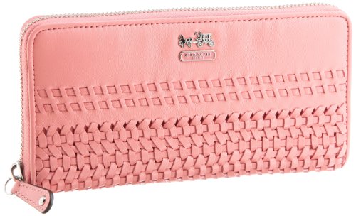 COACH MADISON WOVEN LEATHER ACCORDION ZIP AROUND WALLET SALMON 49195