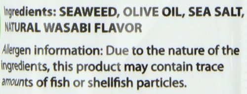 -. Feature : Net Wt 0.18oz (15g) in a small convenient Grab & Go size / Non-GMO Project Verified roasted seaweed snack that is vegan, gluten-free / Crunchy and delicious snack made with all natural ingredients / No artificial colors, flavors or preservatives and high in vitamins (B1, B6, C), vegetable protein, fiber, iron and other minerals and trace elements / Enjoy wrapped around rice, in your favorite soup, salad or sandwich, as a pizza topping or just right out of the pack