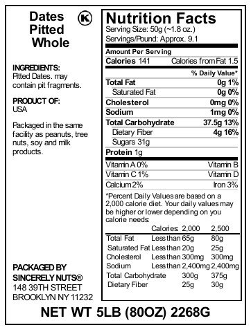 -. Title : Dried Pitted Dates, 5LB - Sincerely Nuts