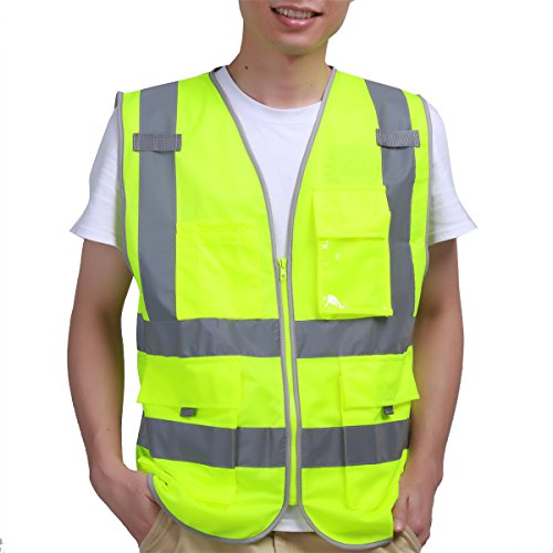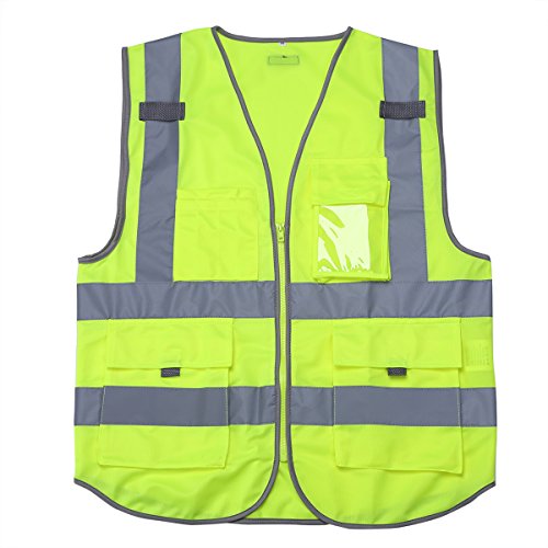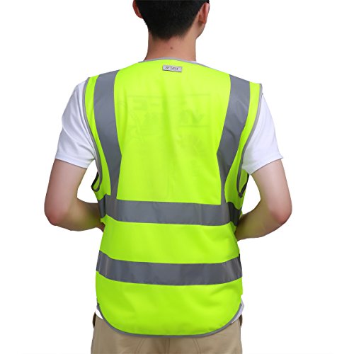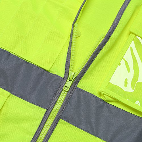 YiZYiF Safety Vest Reflective Zipper Protective Workwear Trimming Construction Motorcycle Traffic Running Emergency for Men Women (Medium, Neon Green)