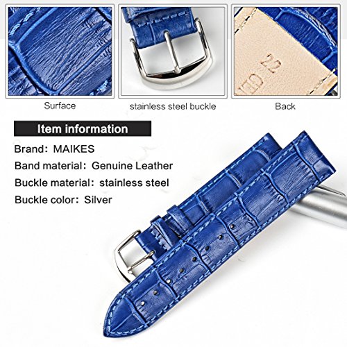 -. Feature : It is made of selected upscale full-grain leather, lossy and textured in appearance, noble and elegant in temperament / It introduces a variety of precise processes including pressing, laminating sewing. The delicate, smooth stitching line reflects our pursuit toward quality. / Feels gentle, tender and comfortable. Besides, it has strong breath ability, with good sweat-proof, odor-resistant performances. / Buckle made of 316 stainless steel, which is extremely glossy and textured, wearproof and endurable / Novel design, distinct vintage style, Watch Leather Straps from MAIKES are made with meticulous craftsmen. We focus on every details to serve you