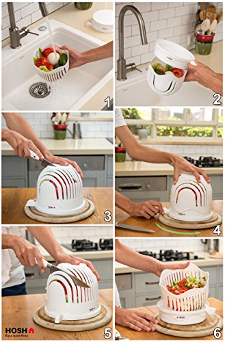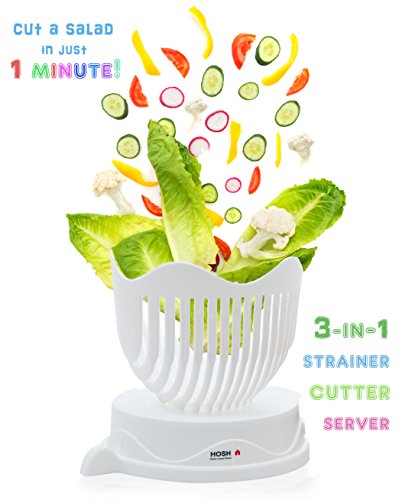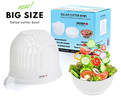 Salad Cutter Bowl / 60 Seconds Salad Maker By HOSH Kitchen / HQ ABS Plastic / Large Family Size / Fast Fresh Fruit Vegetable Cutter Chopper Slicer / strainer / cutting board / 1 Minute Salad Maker