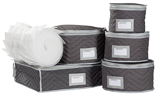 China Tea Cups and Plates Storage Set - Deluxe Quilted Microfiber – Grey, with Braidz Foam Padding