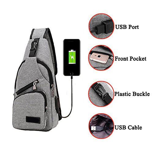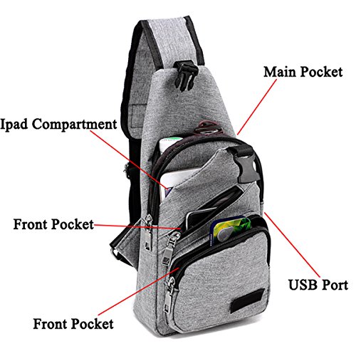 -. Feature : ✔ GOOD ORGANIZATION: Includes a main pocket and two small zippered pockets, in the main pocket there is a large pocket and two small inside pockets. The drawers of different sizes offer separate space for passport, pens, notebook, keys, wallet, umbre / ✔ IDEAL APPLICATIONS: Fashion ( bright and vibrant color, cute and good quality), casual (keep your hands free but without the bulk of a regular backpack), outdoor sports (hiking, camping, climbing, running, cycling, bike riding, etc), outings, trave / ✔ MULTIFUNCTION : Great flexibility, it can be used both as chest pack and shoulder bag, messenger bag, travel bag; Satchel strap is adjustable and can be left or right shoulder, Fit both regular and plus-size person / ✔ USB CONNECTOR & ANTI-THEFT DESIGN: With the USB battery charging connector, the outdoor shoulder bag provides a convenient charge for your electronic device anywhere. Using the buckle in front of the bag can prevent theft and protect your purse, ph / ✔ ENVIRONMENTAL & DURABLE MATERIAL: Made of high quality polyester, which makes the bag durable and does not fold. By professionally washing, chemicals and biting smell are eliminated, at the same time the bag is soft and comfortable.