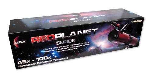 Carson''s RP-300 RedPlanet Newtonian Reflector Telescope features a sturdy equatorial mount to counteract shaking and movements. It features setting circles which allow you to dial in coordinates similar to latitude and longitude to find specific stars, planets and constellations. Aperture 114mm (4.5) 45-100x magnification Focal length 900mm (35.4) 6x30mm finder scope K20mm and K9mm eyepieces Equatorial mount with sturdy aluminum tripod