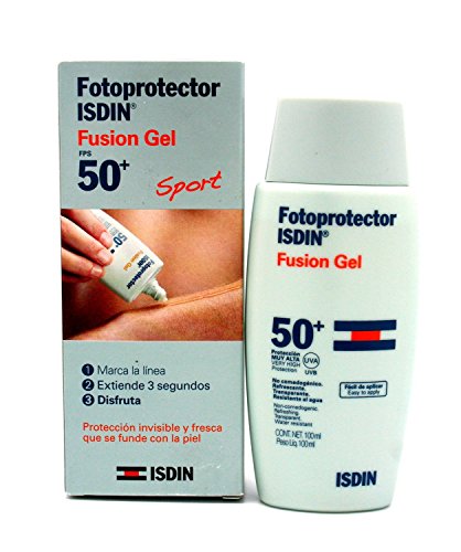 Isdin Fotoprotector Fusion Gel SPF 50+ Photoprotection ideal for the practice of outdoor sports. Suitable for men, hairy areas and cuioi hair. benefits It gives an immediate feeling of freshness. Texture easily applicable, high spreadability and fast absorption. Leaves no greasy residue. In practical packaging and easy to carry around. How to use 1- Draw a line 2- Stretch out in 3 seconds 3- Leverage the invisible protection that blends with skin Reapply every 2 hours or after sweating, or dry with a towel. Format Size: 100ml.Feature