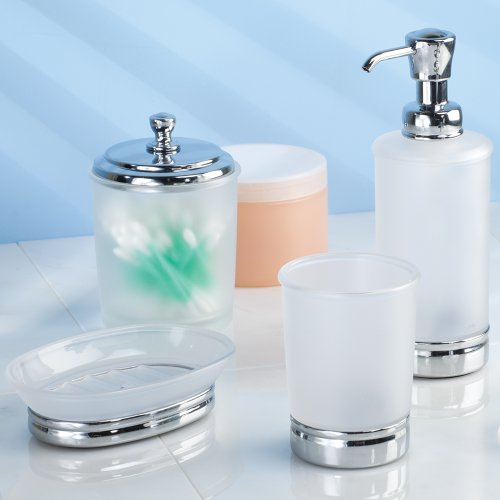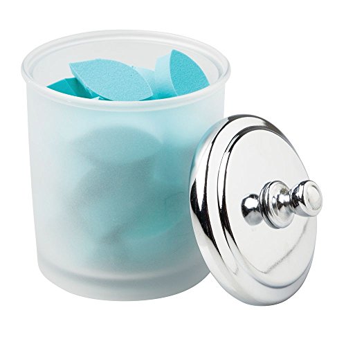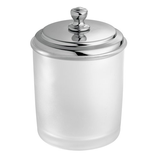 InterDesign York Bathroom Vanity Canister Jar for Cotton Balls, Swabs, Cosmetic Pads - Clear, Frosted/Chrome