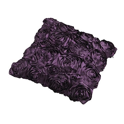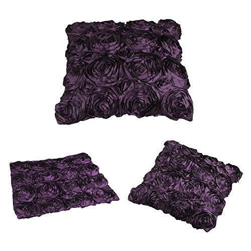 WOMHOPE Set Of 2 Pcs 3D Solid Color Satin Rose Flower Square Pillowcase Bed Sofa Cushion Pillow Case Arts Decorative Cover Rose Flowers Throw Pillow Covers Protector(Purple 2)