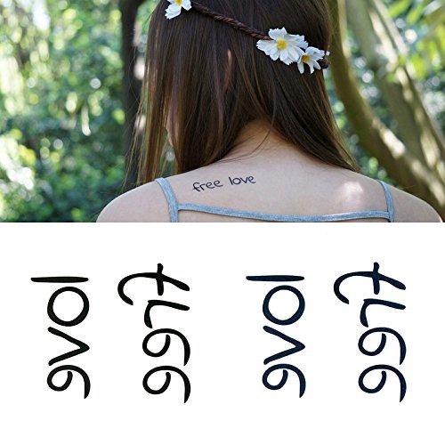 Oottati Small Cute Temporary Tattoo Quote Free Love Shoulder (Set of 2)