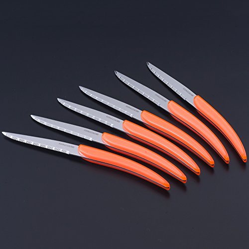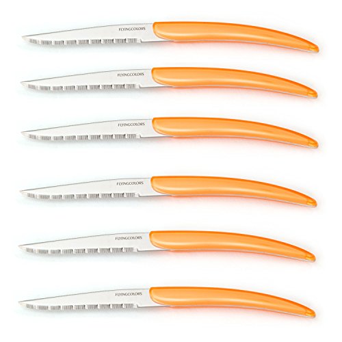 FlyingColors Steak Knife Set, Unique Design, Stainless Steel, Orange Color Handle