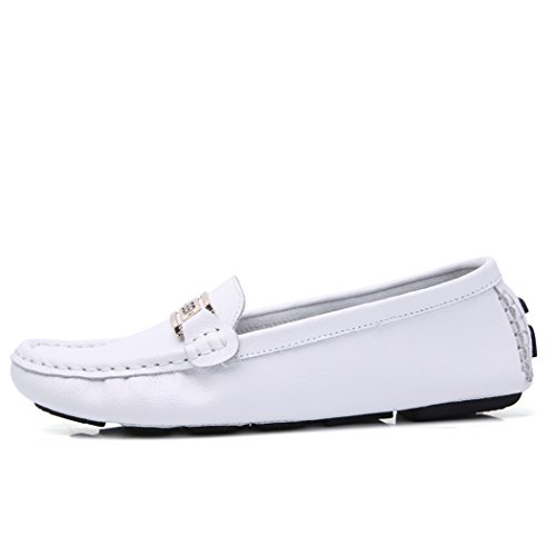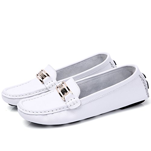 Womens Genuine Leather Flat Shoes, Casual Comfortable Driving Slip-on Moccasins Loafers Shoes