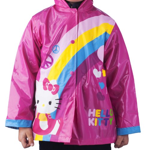 These character Hello Kitty rain jackets are as cool as it gets. Your little one will love this fun and cute way to stay dry. The hood and snap closures keep the rain out. The graphic character prints keep the fun going. You won't go wrong!Feature