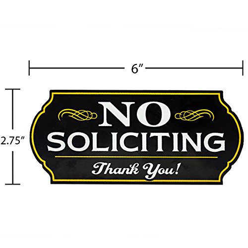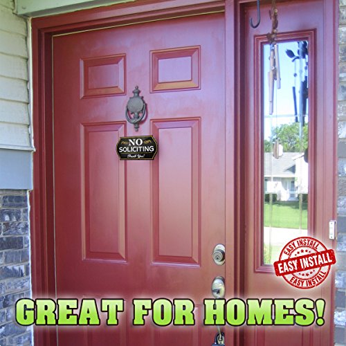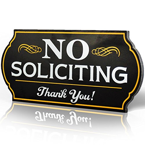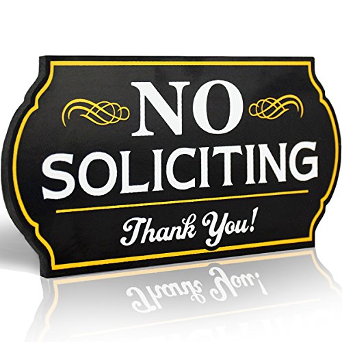 Attractive No Soliciting Metal Sign for Home and Business | 6" Long Laser Cut Shape | Deter Door Knockers and Bell Ringers (Long Lasting Aluminum Composite Material)