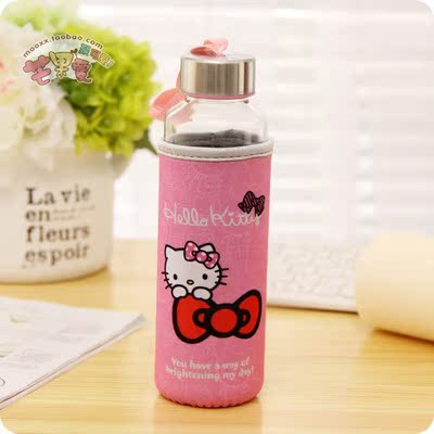 Super Meng hello kitty cute cartoon glass bottle with cup green summer essential