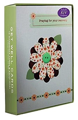 Handmade Assorted 10pk Get Well Boxed Cards with Cupcake, Flower, Puppy, Butterfly, with KJV Scripture, Embellished with Paper Tip-ons, Ribbons, Buttons, Gemstones
