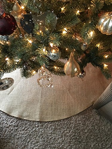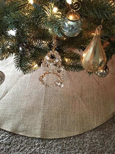 50" Natural Tan Silver Lurex Jute Burlap Tree Skirt - The Perfect Christmas-Tree Skirt with Bonus Star Wood Ornament