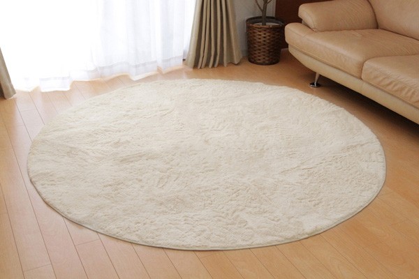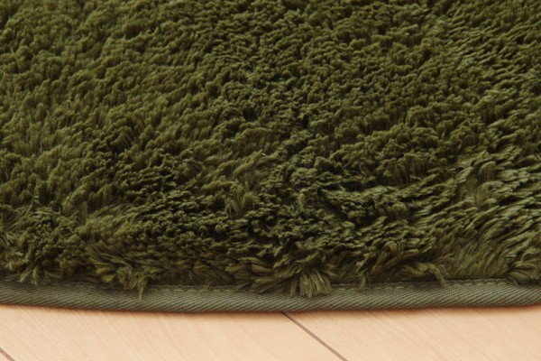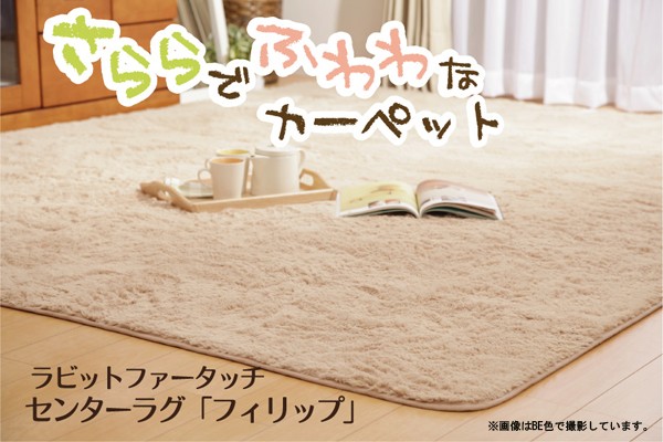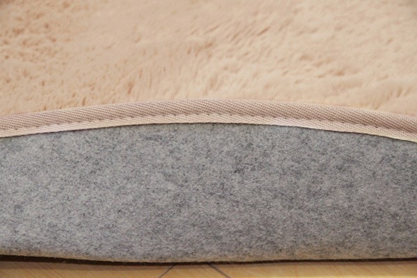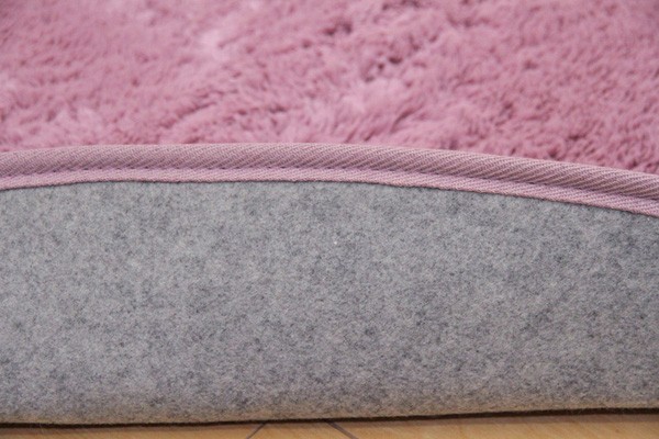 カラーは選べる10色展開です。表地にフィラメント糸(極めて長い繊維)を使用しています。遊び毛が出にくく、耐久性に優れています。パイルの長さは約18mmと適度な長さで、しっとりふわふわとしたやさしいタッチ感を出しました。フローリングを傷つけにくいよう、裏には不織布を貼っています。