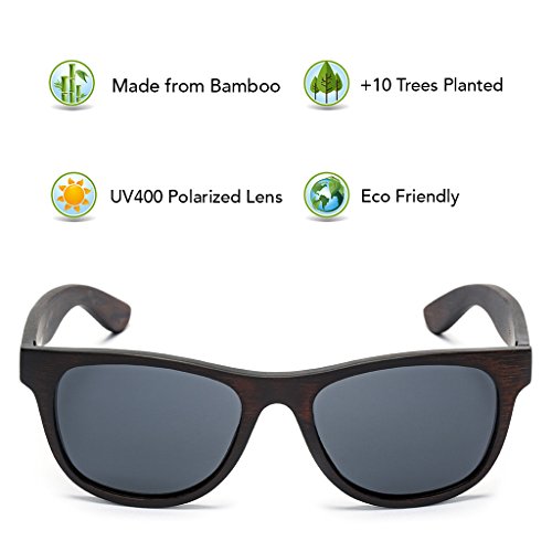 Bamboo is a natural eco friendly sustainable material. It grows much faster than trees, requires less water, and can be reharvested over and over again. Our layered bamboo sunglasses fit and feel just like premium plastic sunglasses, but they're eco friendly, 100% bamboo!