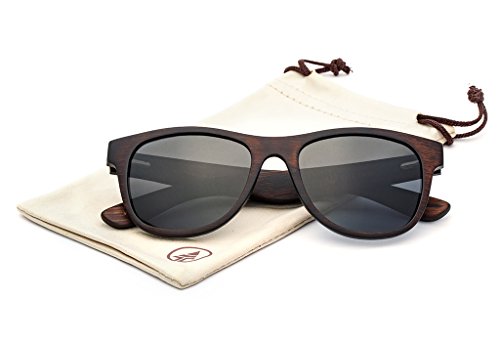 Each pair is hand crafted from thin layers of bamboo. We use high quality certified polarized lenses and stainless steel flex hinges that snap and hold strong in place. The flex hinges are able to easily hyper-extend for a comfortable fit. The frames have water proof coating to protect the material.