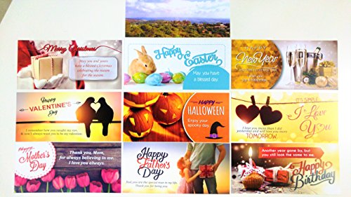 -. Feature : BEAUTIFUL GREETING CARDS - this set contains 10 lovely greeting cards with 10 matching envelopes and one larger envelope for keeping them in one place, ready to write and send; card dimensions are approximately 4 by 8 inches; it is an excellent way to remind someone how much you love them; / PERFECT FOR ALL HOLIDAYS - with this COMPLETE packet, you get a card for Birthday, Christmas, New Year, Valentine's Day, Easter, Mother's Day, Father's Day, Halloween, General, and Gift; keep them safe in the large envelope and available whenever needed; / PERFECT FOR ANY OCCASION - with this complete packet, you get a card for the New Year, Valentine's Day, Easter, Mother's Day, Father's Day, Halloween, Christmas, Birthday, General, and Gift; keep them safe in the large envelope and available whenever needed; / A UNIQUE PRESENT - this pack works for those who like to keep in touch with their loved ones or special friends and family members; give as a gift and include postage stamps to make it easier for shut-ins or those who cannot access stores or stamps readily; / 100% MONEY BACK GUARANTEE - ALMA CREATIVE DESIGN aims to keep you happy with our products so offers a money back guarantee; if there are any concerns or questions, please contact us as we will make it right; made in Switzerland