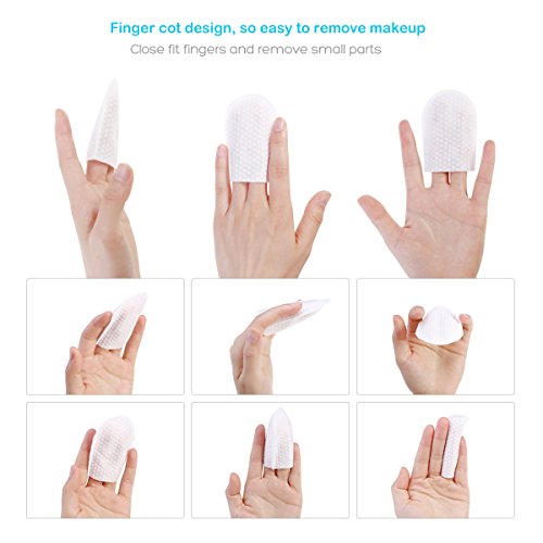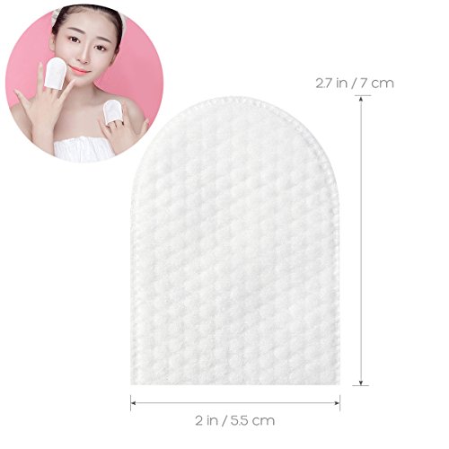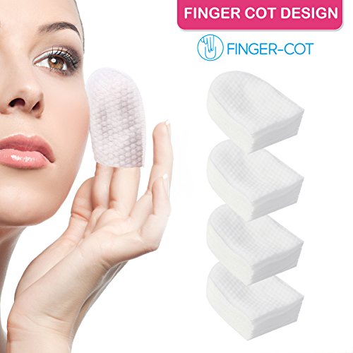 - UNIQUE FINGER-COT DESIGN. Designed to slip over two fingers, these two-sided pads give you better flexibility and tactile contact with your face than regular cosmetic cotton pads, cotton size 2.7 x 2 inch(7 x 5.5 cm).