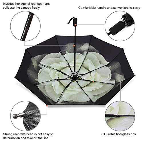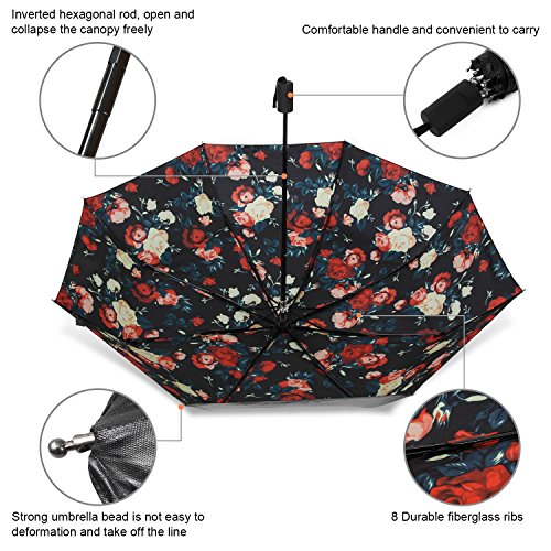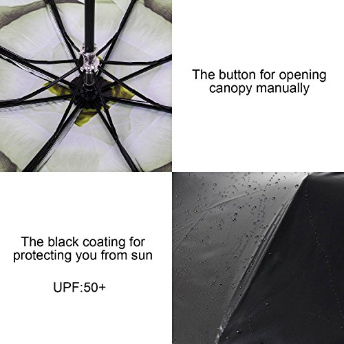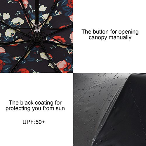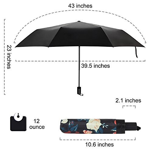 -. Feature : ?LIFETIME REPLACEMENT GUARANTEE?: Using the Rainlax umbrella, you are always protected from the rain, strong wind, snow and UV. The Umbrella(s) That You Purchase will be Automatically Enrolled in our lifetime replacement guarantee program. If anything goes wrong with your umbrella, we will send you a replacement absolutely free, no return required / ?ANTI-UV PROTECTION?:This travel umbrella has double layer black vinyl to protect you from sun of UPF> 50+ / ?CONVENIENT FOR TRAVEL ?: The mini compact travel umbrella is 10.6 inches length when fully closed. That is a very good size to put in handbags, backpack, schoolbag and so on. Also our Rainlax folding umbrella is a manual open & close umbrella, you can completely take control of it to avoid damage to others caused by automatic open or close / ?8-RIBS CONSTRUCTION?: The windproof rain umbrella has 8-fiberglass ribs, protecting you well against the heavy rain with strong wind you may encounter in / ?SOFT-TOUCH GRIP?: It always happens that when you hold an umbrella for a long time, you feel sore of your hand and wrist, the soft-touch designed grip of this compact umbrella alleviates it effectively