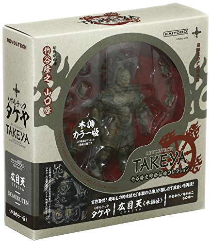 -. Feature : Imported from Japan / Takeya Revoltech interprets the gods of the Buddhist pantheon as highly-detailed and highly-articulated action figures / Detailed sculpt with flaming halos and an impressive display base / Komokuten is the guardian of the west / Figure stands roughly 5" high