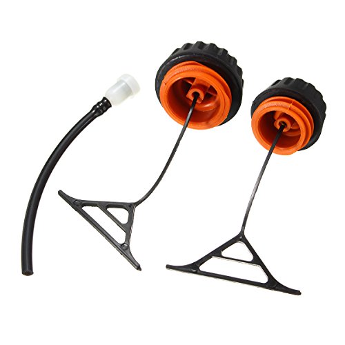 Description: New high quality replacements Gas Fuel Cap Oil Cap Fits STIHL 021 023 025 026 034 036 038 chainsaw. Specification: Color: Black orange Material: Plastic Manufacturer Part Number: 0000 350 0520(Gas Fuel Cap), 0000 350 0510(Oil Cap) Compatible With: Fit for Stihl 020 021 023 024 025 026 028 034 036 038 048 chainsaw Package Included: 1 X Gas Fuel Cap 1 X Oil Cap