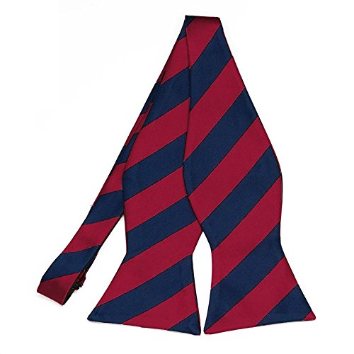 -. Title : TieMart Crimson Red and Navy Blue Striped Self-Tie Bow Tie